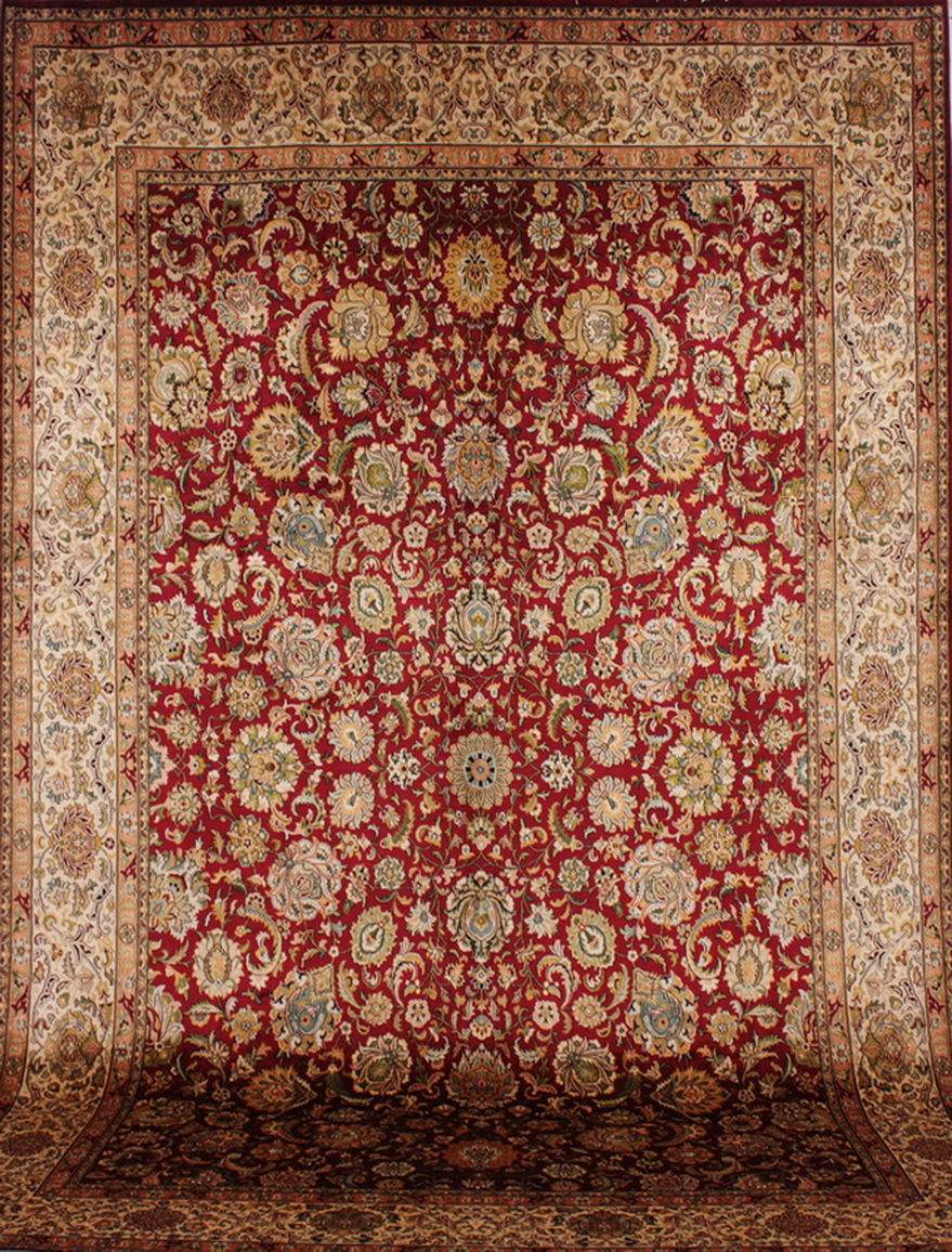 Τα χρώματα του χαλιού διαφέρουν (ανοικτό ή σκούρο) ανάλογα την φορά του πέλους και την γωνία την οποία κοιτάζεται το χαλί.